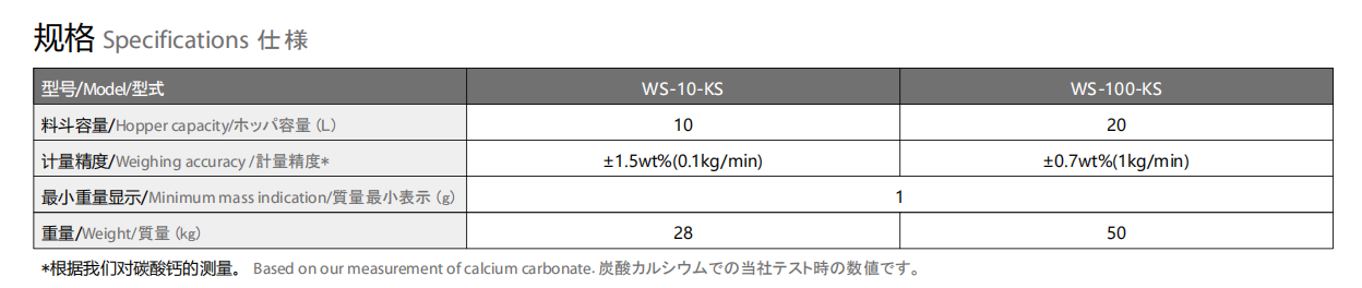 計量能力:WS-10 : 1~10kg/h